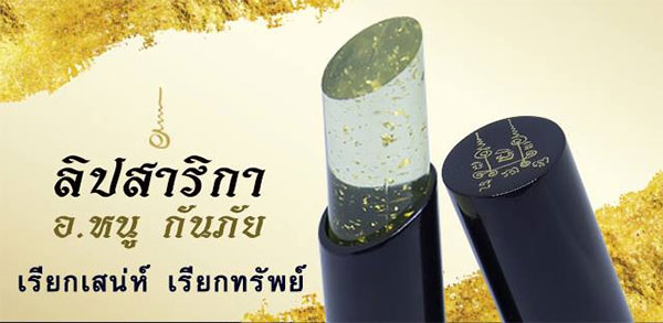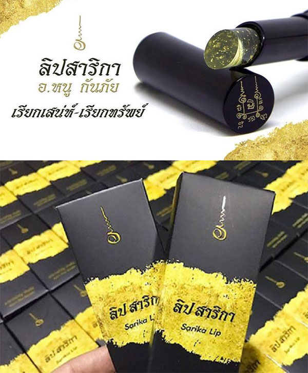 ลิปสาริกา อ.หนู กันภัย มหาเสน่ห์ เป็นลิปกลอสเนื้อใส ผสมด้วยทองคำเปลวบริสุทธิ์ และอักขระยันต์สาริกา ลิ้นทอง ที่ผ่านการอธิษฐานจิตปลุกเสก อย่างเข็มข้น สุดขลัง โดย อาจารย์หนู กันภัย